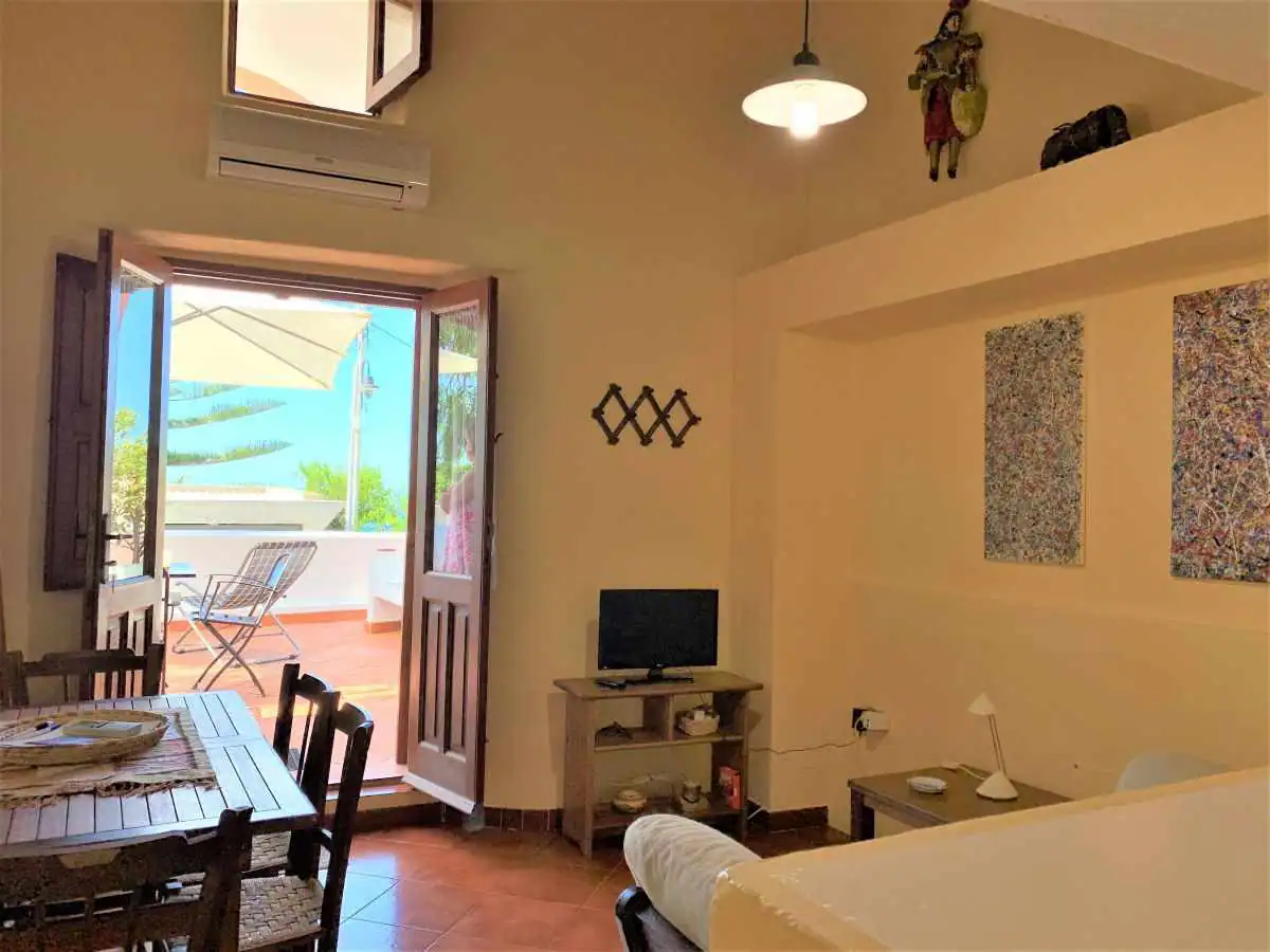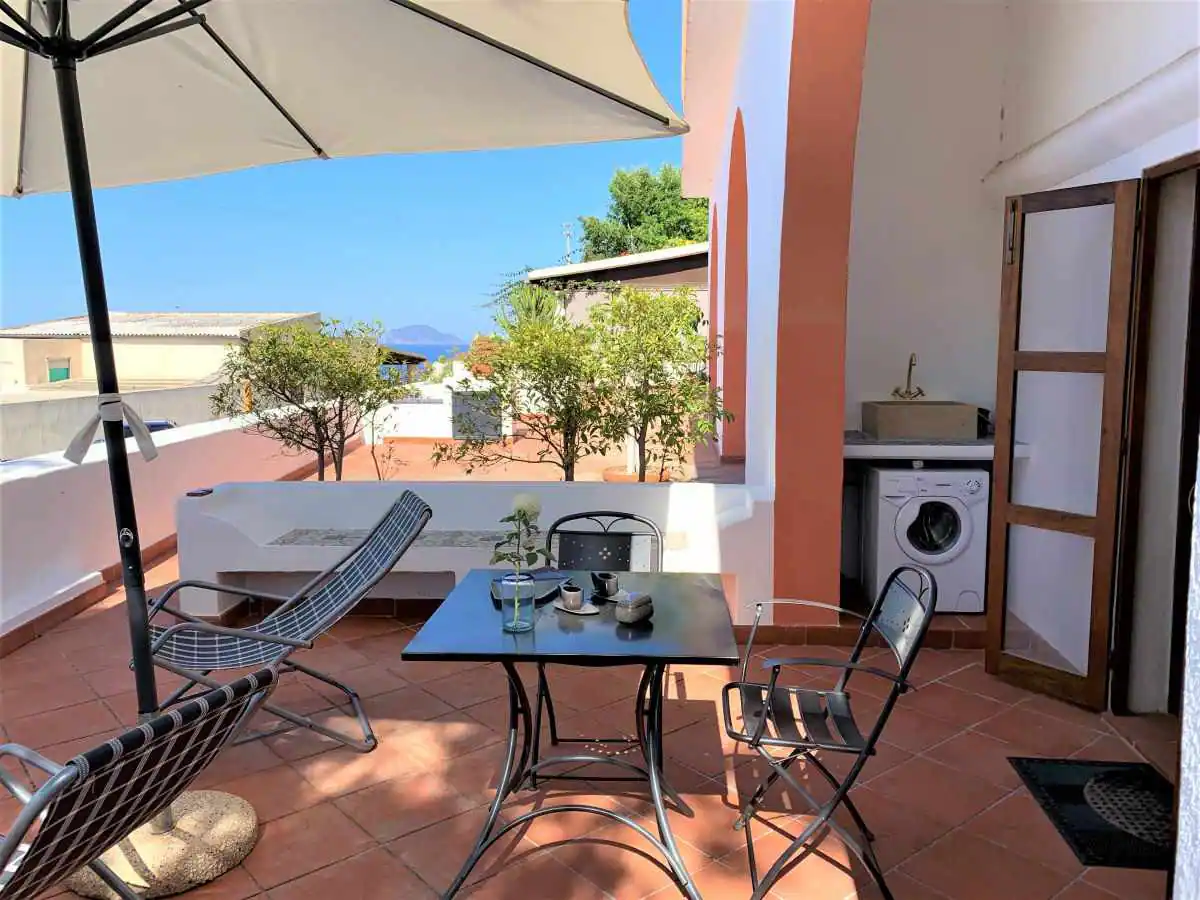 Casa Papuzza un monolocale indipendente ma inserito strutturalmente nella dalla grande dimora che lo ospita, Casa Lucilla dispone di un terrazzo con vista sul mare dotato di ogni confort: tavolo, sedie, sedie sdraio, cucinino esterno e lavatrice. La casa è dotata di un angolo soggiorno con divano, tv, wi-fi a fibra ottica e ventola. In camera da letto, troverete un comodo letto matrimoniale e l’aria condizionata. Il bagno è completo di ogni confort.